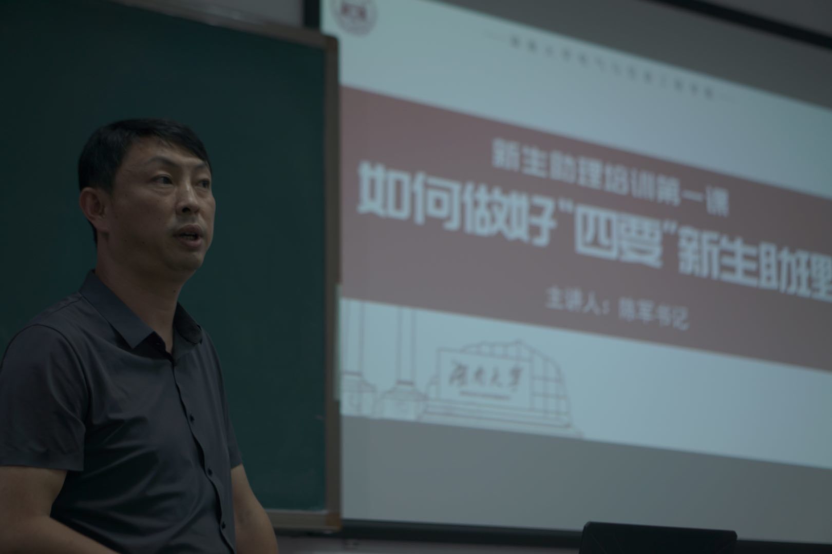 办学一百周年的重要历史交汇点上,学生助理要做到“四要”:第一,要锤炼品德,明白责任担当。即要明担当、敢担当、善担当,正面引导新生,发扬“传帮带”精神。第二,要以身作则,发挥榜样作用。即要用自己的行动和思想引导新生,做一个有家国情怀、正直善良的人。第三,要吃苦耐劳,勇于砥砺奋斗。即在每一件小事、每一个任务、每一项职责中发扬吃苦耐劳和艰苦奋斗的精神。第四,要学思践悟,提高自身本领。即多思考,善学习,常自省,锻炼自己解决问题的能力。他表示如何让骄傲的“电气蓝”在“湖大红”中再展荣光是所有新生助理需要思考的新命题。他希望通过培训,把新生助理团队建设成“目标明确、品行高尚、纪律严明、踏实负责、工作严谨、崇尚集体”的优秀团队,为学院培育新一批可堪大用、能担重任的栋梁之才打下牢固基础。