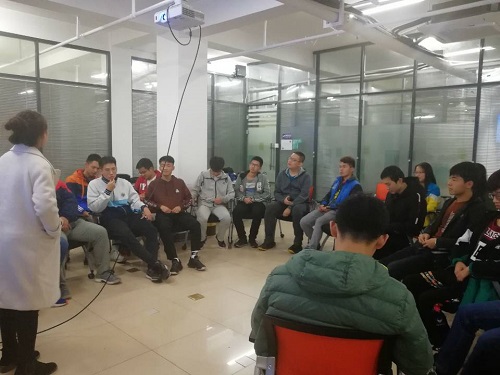 2018年11月13日下午,副班长孟梓琪组织自动化1702班同学在图书馆研讨空间6进行团辅活动。本次活动由辅导员丛珊珊主持。活动分为暖身阶段、自我探索阶段、分享阶段、总结阶段。
