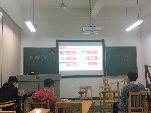 第九次代表大会精神宣讲PPT》,切实学习“湖大精神”。第二项,李小玉带领同学们关注民生,聚焦两会,并就两会中的热点问题向同学们提问,同学们纷纷表达了自己的观点。第三项,为深入贯彻落实习近平新时代中国特色社会主义思想和党的十九大精神,李小玉同学播放了介绍习近平新时代中国特色社会主义思想的相关视频,与同学们一起学习。最后,就当今时事热点,李小玉同学分享了一些自己的看法,并与同学们进行了讨论。