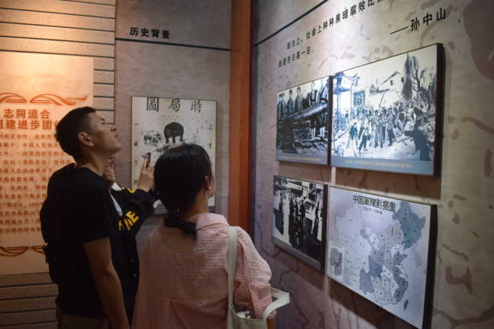 出了故居,同学们来到了陈列室。陈列室以历史为轴,划分为四个主题,即从最初的“志同道合,组建进步群体”,到“向外发展,寻求革命真理”,再到“确立信仰,提出建党理论”,最后“完成使命,迎接新的曙光”。它用丰富的照片影像,报刊剪辑,时人评论,信件实物,生动地展现了风云变幻的历史格局,描述了新民学会的发展历程,反映了五四运动时期革命青年的成长经历。峥嵘岁月已成过往,但不变的是中华儿女血液里流淌着的红色基因,不变的是对革命先辈的敬佩和精神上的共鸣。