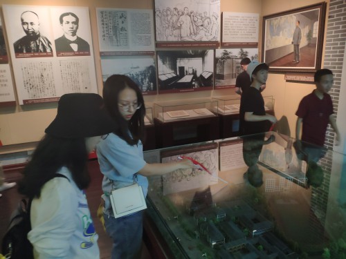 一路的嬉闹,一路的期待,一路的畅谈,同学们在一种轻松欢快的氛围中抵达了第一师范旧址,抬头仰望,入目而来的则是一种“典雅庄重的建筑风格,以西方建筑风格为主却又不乏中国建筑特色,每一处设计都恰到好处的展示出中西文化的交融。走进大厅,两侧的题词匾额“实事求是,不自以为是”以及“要做人民的先生,先做人民的学生,”这两句话充分地展示了前辈们对后代人的期望与警醒。进入各个展厅,迎面而来的则是浓重的历史气息,同学们仿佛进入的历史的浪潮,感知先辈伟人们的的人生事迹。