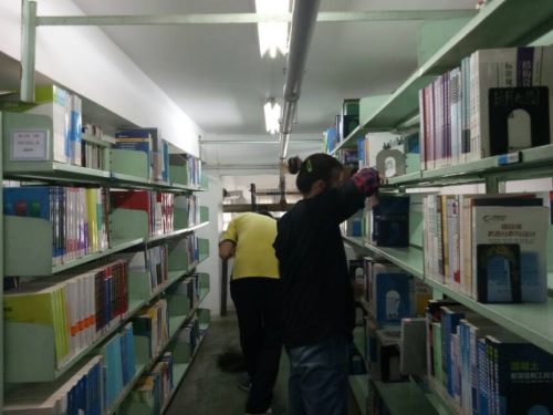 经过了一个半小时的打扫工作,平日熟悉但又不十分干净的书架在同学们的精心清洁后,恢复了洁净,给人以清新舒适的感觉。相信有这么干净的书架,读者们定会心情愉悦地吮吸知识的养料。此次活动同学们都积极地配合指挥,并且尽自己最大努力把书架、地板打扫干净,得到了值班老师的一致好评。通过自己行动,为读者、图书馆贡献自己的一份力量。在清洁过程中,更进一步加强了团队的合作意识,在互帮互助、共同努力下,大家享受着汗水中的甘甜,在奉献中收获了劳动的快乐。