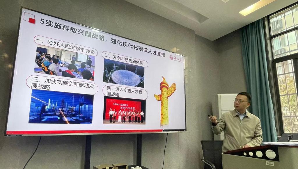 党委委员、副院长刘敏同志讲授“新学期第一堂党课”。重点围绕“高举中国特色社会主义伟大旗帜为全面建设社会主义现代化国家而团结奋斗”展开,深入学习党的二十大精神和新党章。参会党员畅谈近期两会热点议题,就国务院机构改革、科技体制创新等展开了热烈的讨论。