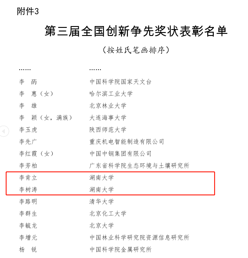 5月30日,庆祝全国科技工作者日暨全国创新争先奖表彰大会举行,大会宣布了第三届全国创新争先奖获得者名单并为获奖者颁奖。我院罗安院士荣获第三届全国创新争先奖章(湖南省唯一),李树涛教授荣获第三届全国创新争先奖状。