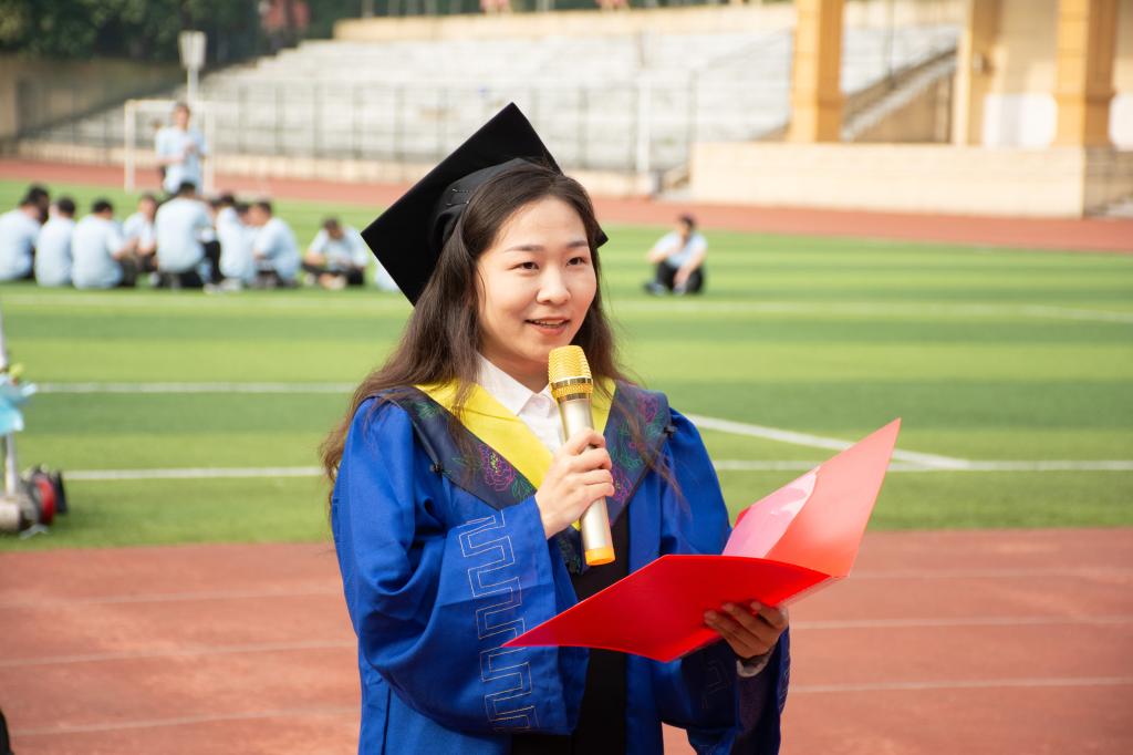 毕业生贾文慧、王之毓分别代表研究生、本科生向学校、学院表达感激之情,表示定会努力在新的工作岗位做出更大的贡献,为中华民族的伟大复兴奉献自己的力量。