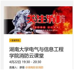 4月22日19:30,学院携手湖南彤安消防安全服务有限公司以“云课堂”形式,开展了消防应急安全知识讲座。百余名老师及亲人朋友线上学习了消防安全理论知识,如怎样正确扑灭初期起火、如何正确逃生自救以及电动自动车的安全使用等知识,还在线观看了消防器材灭火器、消防面罩的正确使用操作步骤。