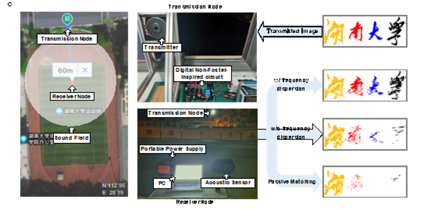 杨鑫教授课题组,与华中科技大学祝雪丰教授、湘潭大学欧阳晓平院士、纽约市立大学Andrea Alù教授合作,利用数字控制技术和碳化硅MOSFET开关器件,首次在大功率电声发射领域创建了数字非福斯特系统,克服了传统模拟非福斯特电路应用稳定差、功率等级低以及参数无法实时任意调节的不足,突破了声辐射的“Chu”物理极限。实验证明所提出的数字非福斯特电路能够在远距离图像传输的过程中提供稳定的,具有频散效应的实时等效负阻抗特性,并且与模拟非福斯特匹配网络对比,将电声发射装置的工作带宽提高了五倍以上,功率处理能力提高了三个数量级以上。其原理和方法可被广泛应用于各类亚波长共振系统装备,包括电声发射,电磁天线,宽带超材料等,具有重要的工程应用价值。