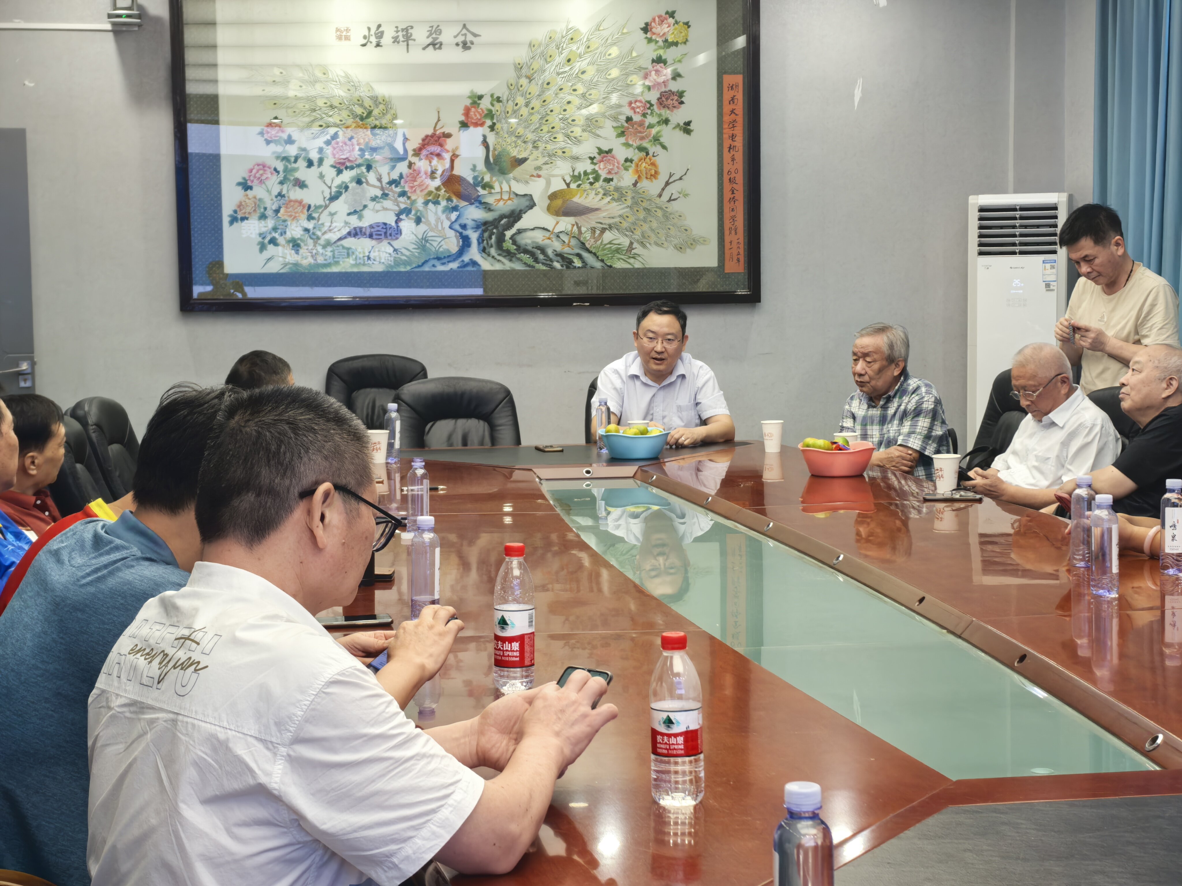 219会议室,举行了80级自动化校友返校座谈会。电气信息工程学院党委书记张小刚,副院长李勇和原党委书记彭楚武老师以及当年任教的彭介华与刘克昌老师出席。校友们共叙母校情、共话同窗谊。