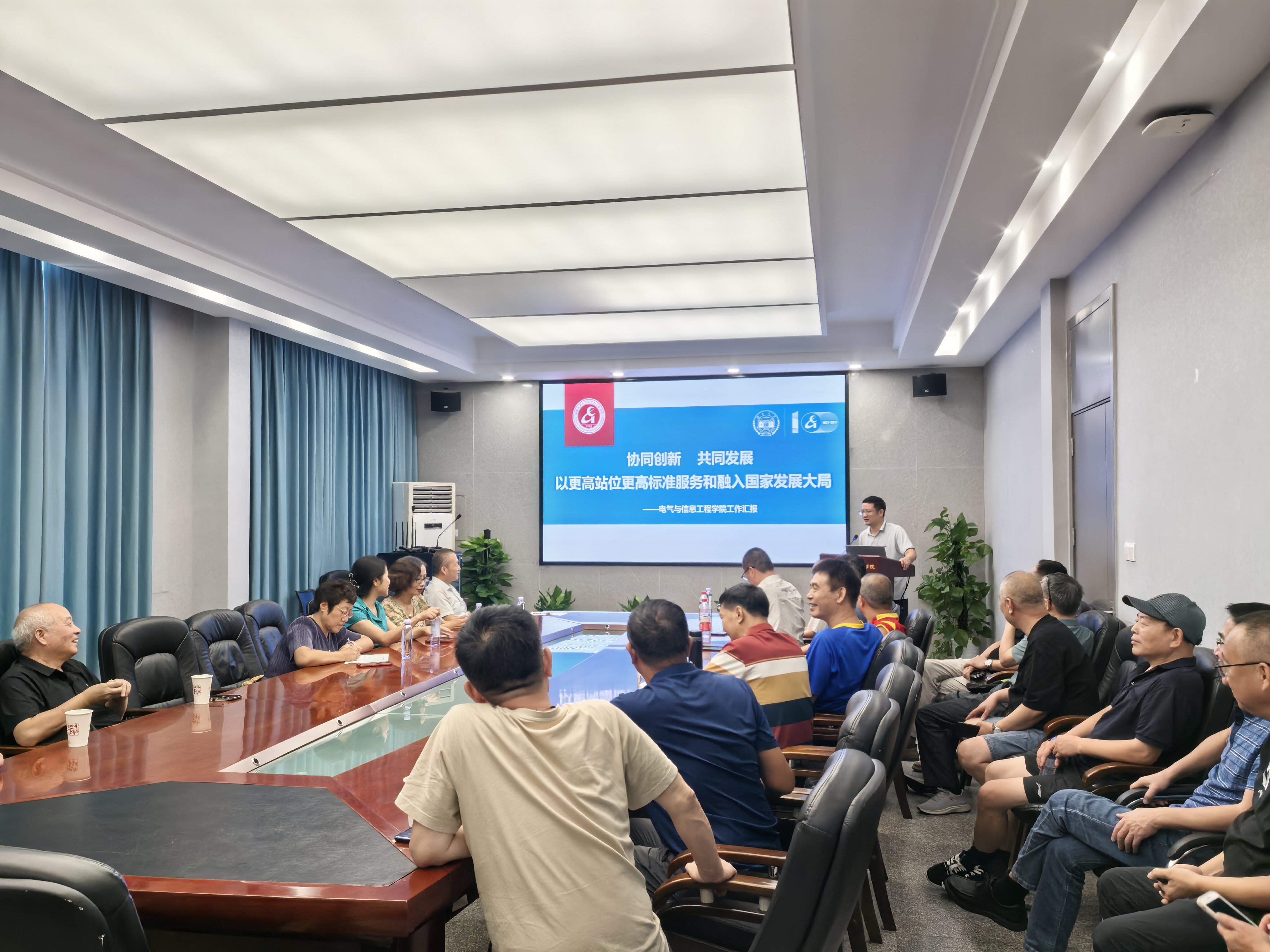 座谈会上张小刚书记谈了学校40年来的巨大变化以及电气学院近年来取得的快速发展和突出成果。李勇副院长作了《协同创新、共同发展》主题讲话。