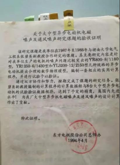 我至今还珍藏着一张来自湘潭电机厂设计科的业务联系书,内容与79级电机专业学生毕业设计有关。联系书写着:“吴辉煌、管金云、赵保国、章蔺四位同学按工厂提出的电磁方案要求全面完成了方案的要求性能指标达标和超标。具有参考价值,特别是为新型结构电机设计了防护顶罩,IP54高压出线盒,端盖轴承装置,冷却器,在没有任何参考图纸,或参考图纸不多的情况下,学生设计绘岀的图纸具有实用价值,希望学校在总评后,能将图纸借给工厂,以便参考和应用。”