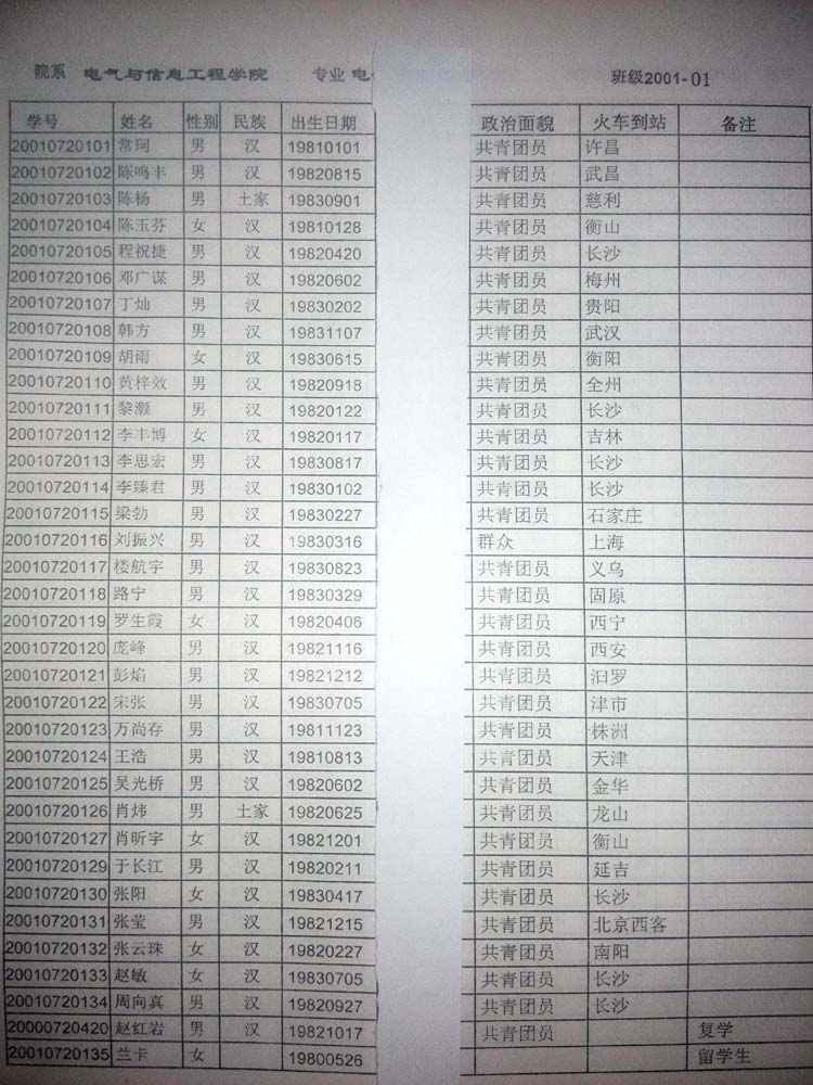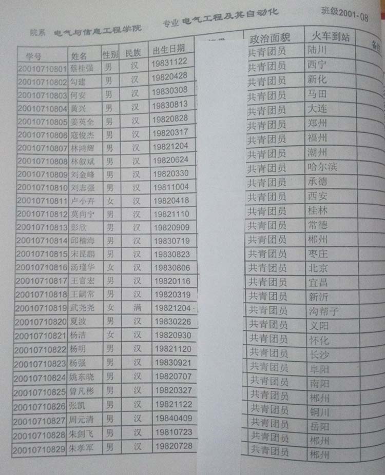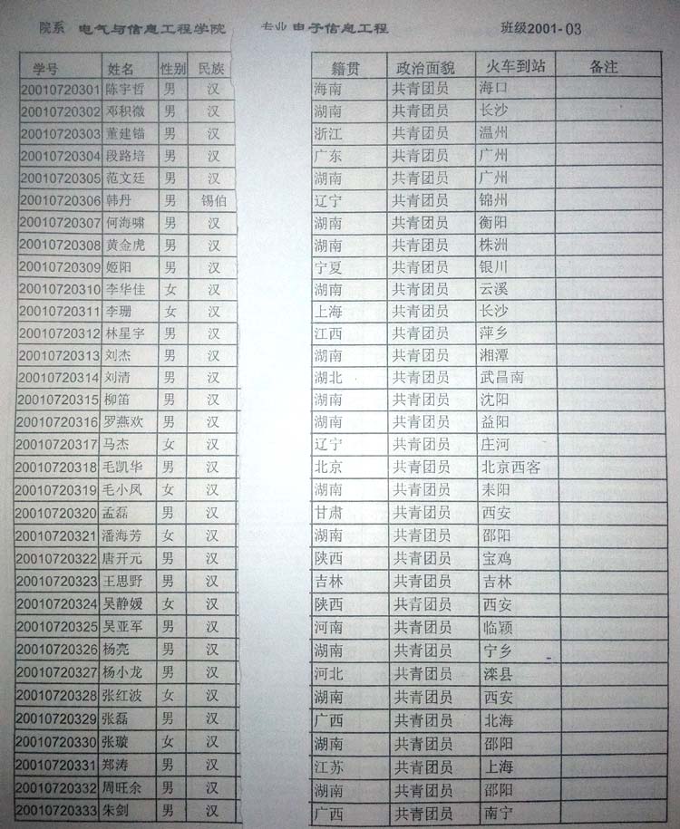 本科生校友名单 (1921—1925 湖南公立 工业专门学校)